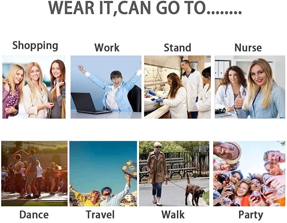 Non-slip, great shock absorption soles make your walk steadier & stand for hours, without any strain or imbalance.